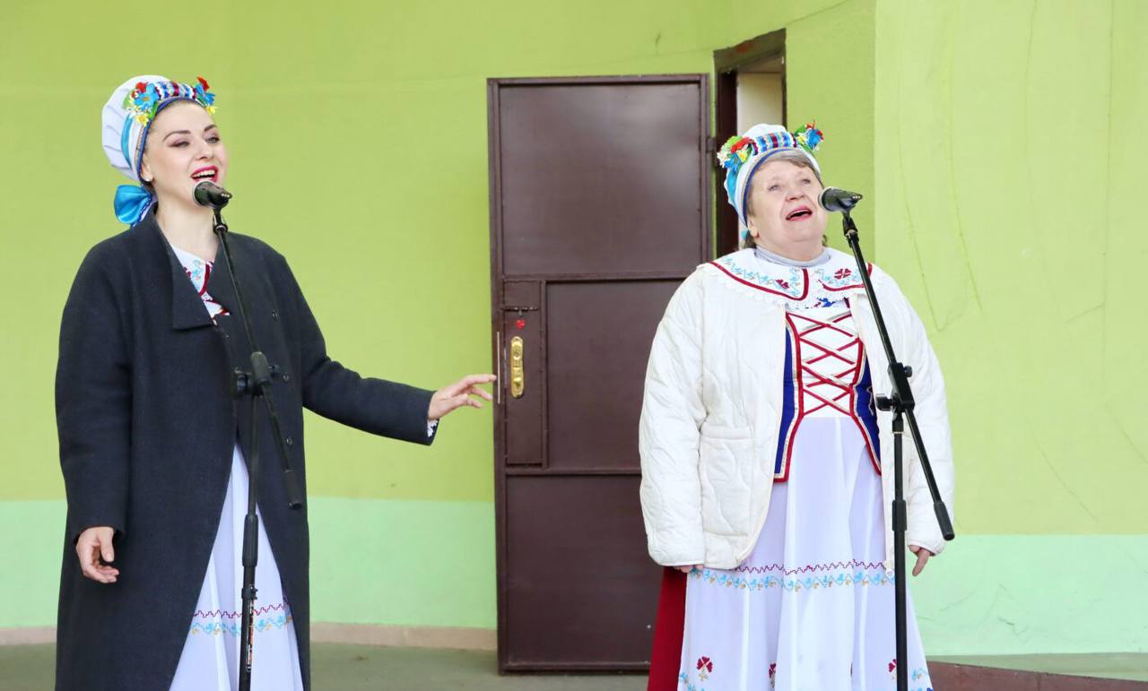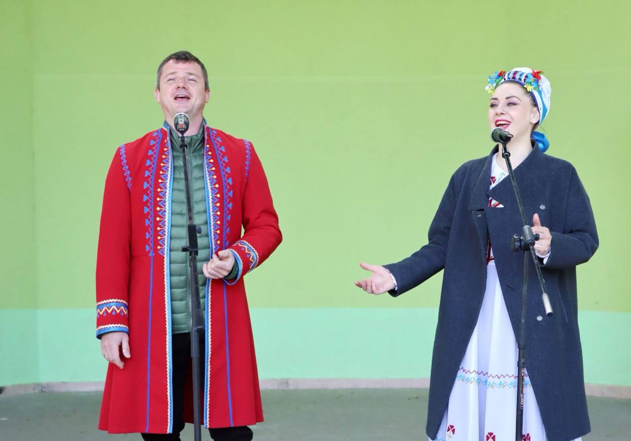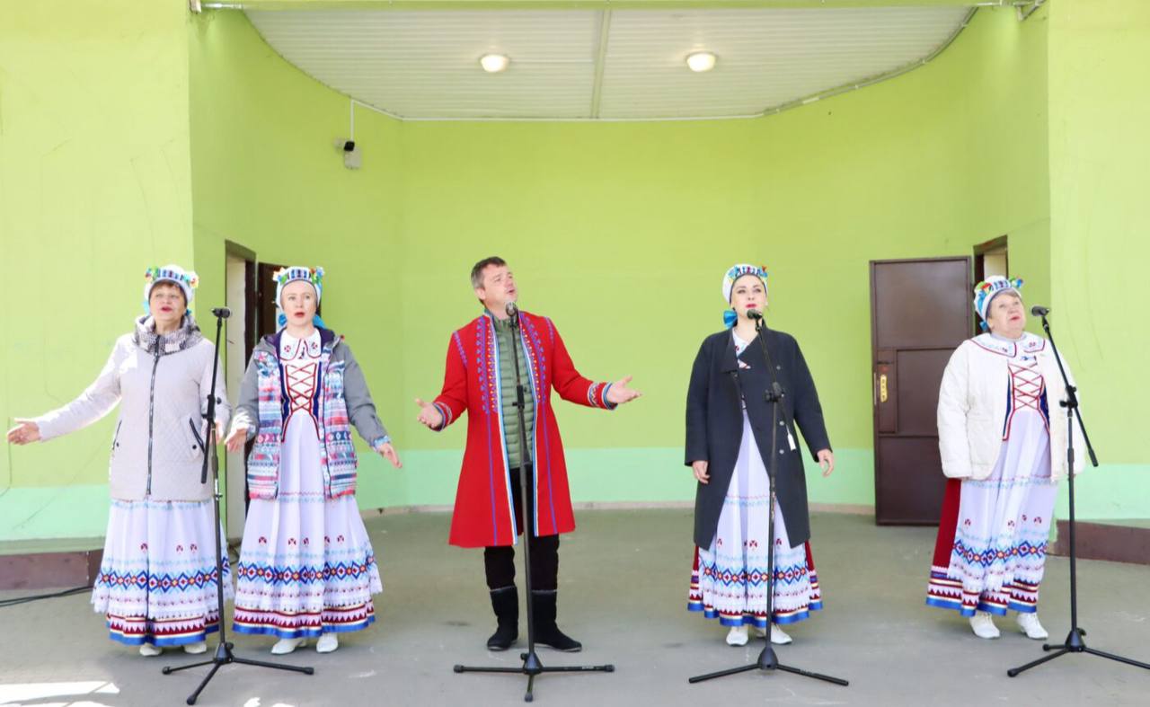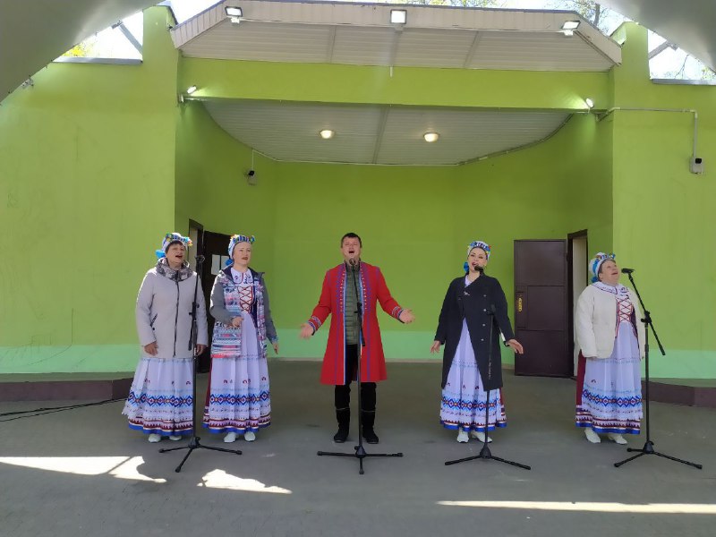 На танцплощадке "Ивушка" в честь праздника труда выступает народный ансамбль народной песни "Коласавы землякі".