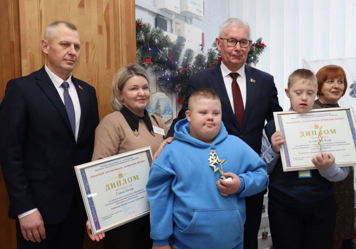 Заслуженные награды — дипломы и символы фестиваля (статуэтку в виде звезды) получили учащиеся Столбцовского центра коррекционно-развивающего обучения и реабилитации Назар Гамза и Матвей Дедюля.