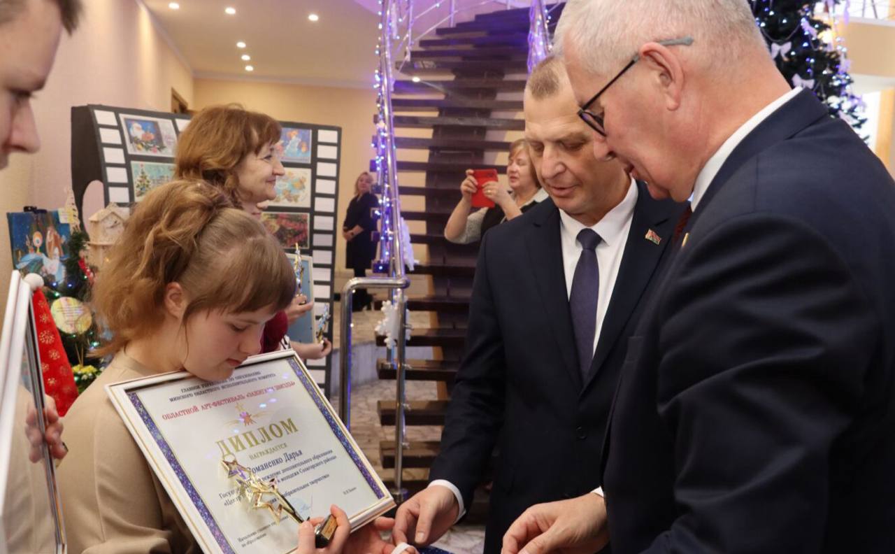 Николай Башко совместно с председателем райисполкома Андреем Атрушкевичем наградили участников арт-фестиваля в номинациях «прикладное художественное творчество» и «изобразительное творчество».